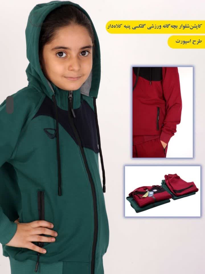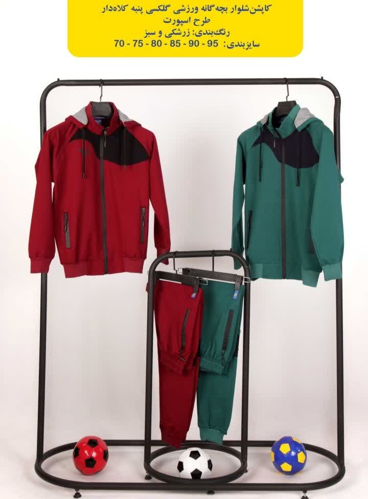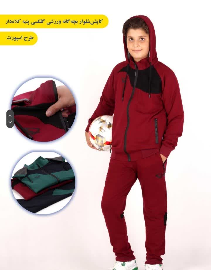 کاپشن شلوار ورزشی بچگانه گلکسی پنبه کلاه دار طرح اسپورت